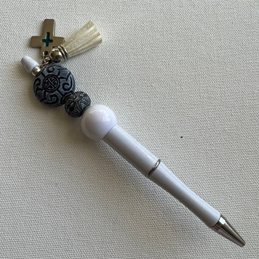 Stonewashed Beaded Pen w/Charm and Tassel RTS