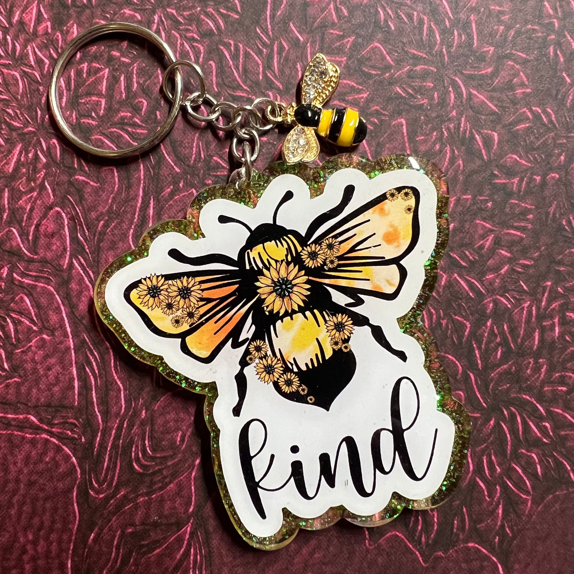 Bee Kind glitter keychain RTS