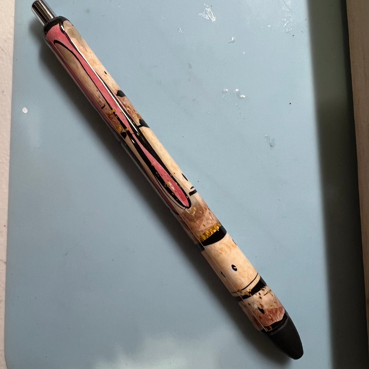 This is a medium point black ink ballpoint pen covered with a white cast pen wrap and sealed in epoxy for durability has actual paint drips on it. Personalize this pen for the painter in your life with our charm packs. (Sample charm pack shown)